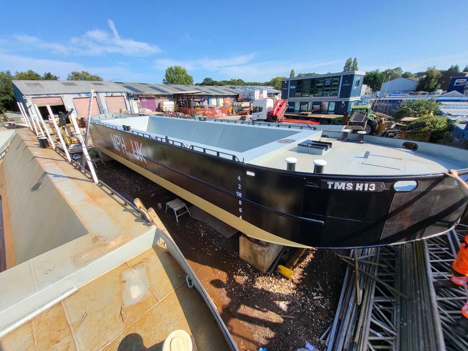H13 is a dry well hopper barge certified to MECAL Cat 3, suitable for coastal and inshore operations. With a gross tonnage of 28 GT and a maximum loading capacity of 27 tonnes at 0.82m draft, she provides a reliable platform for material transport, excavation support and coastal infrastructure works. Her 19.70m length, 4.07m breadth and 1.89m moulded depth, combined with a 40m³ hopper hold, enable efficient site operations across a range of tidal and environmental conditions. Light and loaded drafts of 0.375m and 1.55m further support operational flexibility.