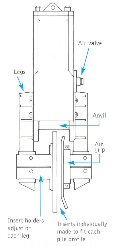 A compact pneumatic piling hammer providing high blow rates and controlled impact energy for sheet pile and small steel pile installation in confined marine environments.