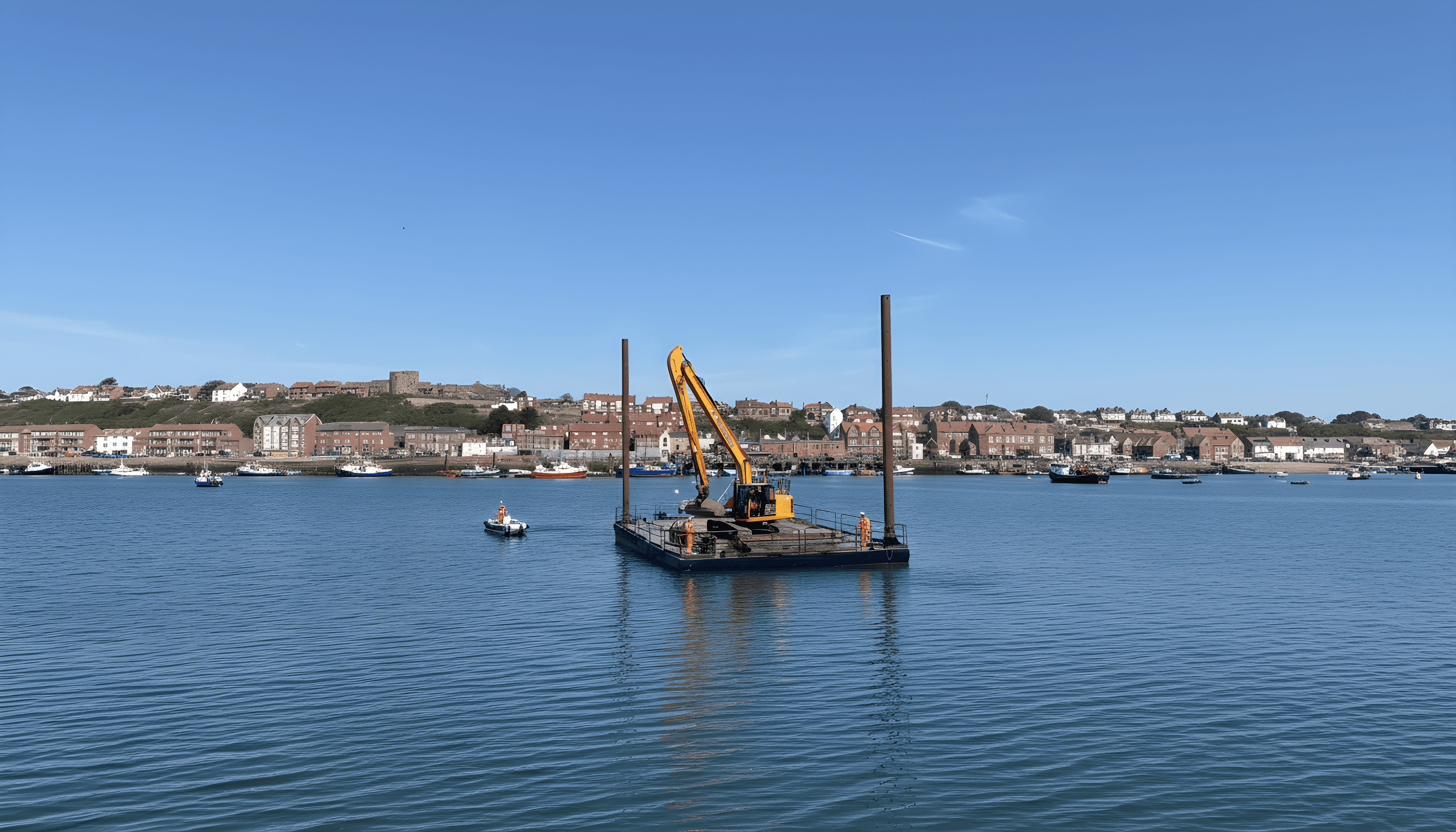 Our vessels are available for hire across the UK, supporting marine projects on the Thames and London waterways, the South Coast and Medway, the Bristol Channel and ports throughout Devon and Cornwall. We regularly work across rivers, estuaries, harbours and coastal construction sites, with mobilisation to European locations also available for suitable projects.