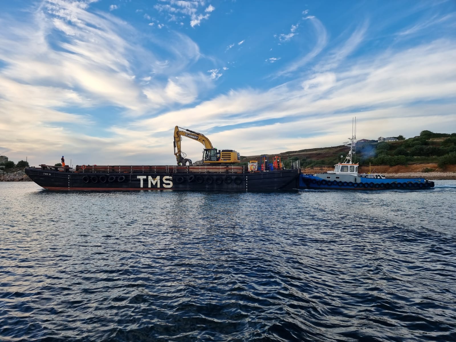A strong, stable flat top barge with significant load capacity and a reinforced deck for heavy plant, construction works and coastal engineering support.